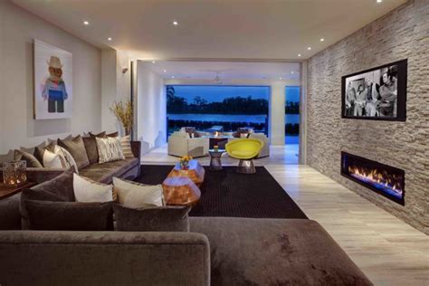 However some of the most important features of a beautiful luxury living room include high end furnishings, amazing views, open plan layout, custom finishes, high ceilings, exposed beams, decorative fireplaces and hardwood or natural stone flooring. Fancy stone veneer fireplace is perfect to be placed in a modern living room. A living room can serve many different functions, from a formal sitting area to a casual living space.